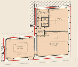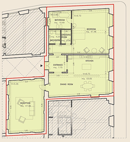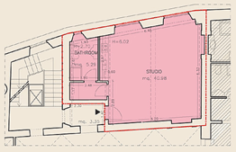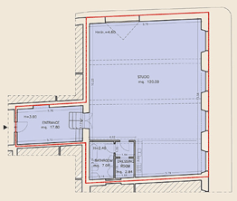 Fig. 17- Palazzo Busini-Bardi, Appartamento 2 piano nobile angolo via Malenchini. Pianta dell'appartamento ricavato nel salone ad angolo con volte a padiglione affrescate. Attualmente gli interni di questa sala sono destinati a studio di un appartamento privato. |